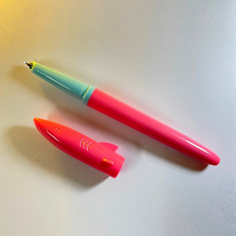 - Chất liệu và thiết kế : Vỏ nhựa hình cá mập dễ thương và chất nhựa siêu bền thon gọn nhẹ nhàng, không gây mỏi tay khi viết, phù hợp các em học sinh mới dùng bút mực