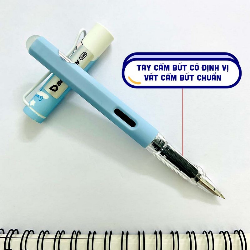 Bút máy sao thiên – Bút luyện chữ cho học sinh từ lớp 1 – lớp 5. Thân vỏ nano siêu đẹp, chống xước. Đầu nắp bút bằng nhựa in hình ngộ nghĩnh đáng yêu.