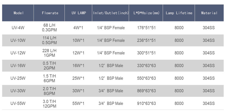 - Đèn diệt khuẩn nước bằng tia UV là sự kết hợp của ống thạch anh có độ tinh khiết cao tích hợp với bóng đèn UV tuổi thọ cao, khử trùng mạnh và hoạt động ổn định, hiệu quả diệt khuẩn là hơn 99.9%